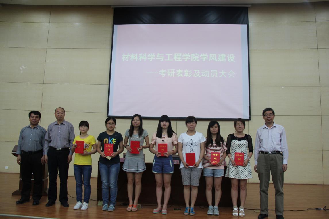 首先,李书记宣读了《关于表彰2014届本科毕业生考研优秀团体的决定》,并和汪院长一起为受表彰学生颁发荣誉证书。表彰中肯定了我院以竹苑15栋206宿舍的8名女同学为代表的2014届本科毕业生考研取得的可喜成绩。