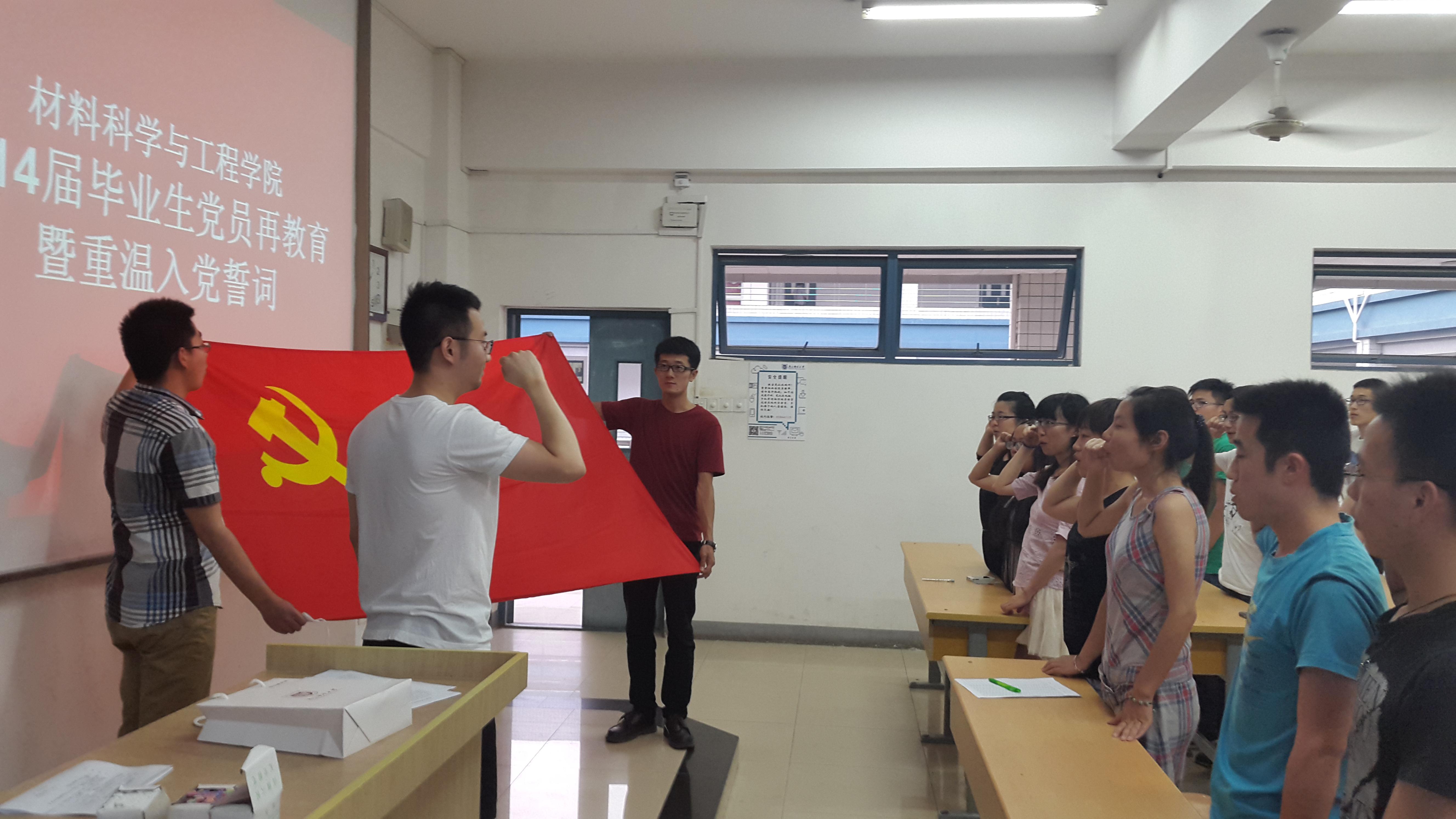 为了切实加强毕业生党员教育,提高毕业生党员的党性修养,激励毕业生党员在文明离校工作中充分发挥模范带头作用。6月10日,轮盘游戏 在教3-404教室举行了2014届毕业生党员再教育暨重温入党誓词主题活动。参加人员有院党委副书记于景宝老师,院组织干事、2010级辅导员刘颖老师及2010级本科生支部全体党员。