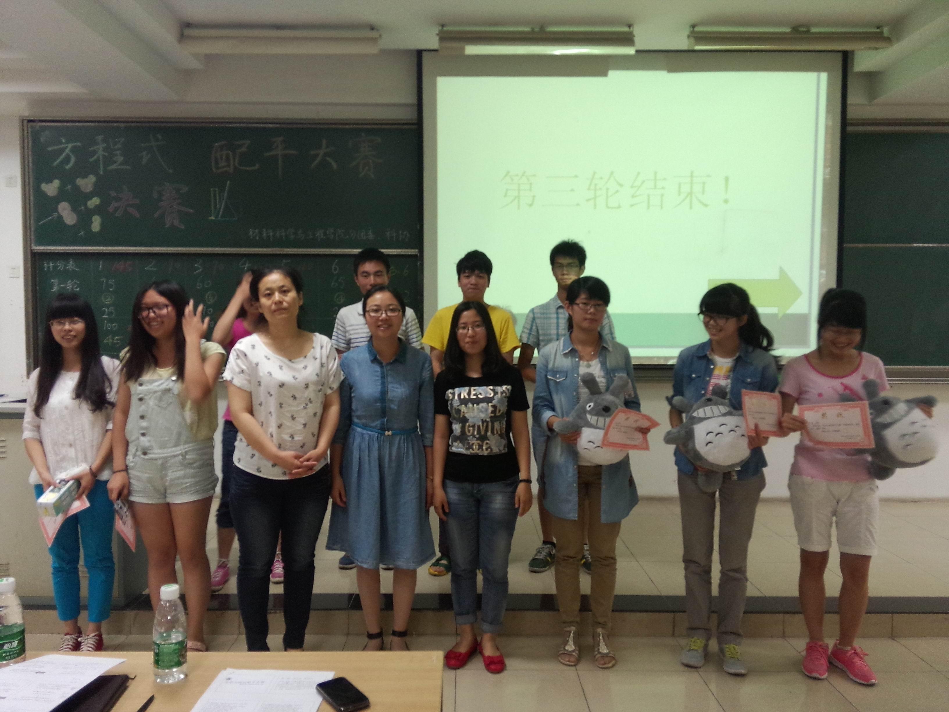 2014年6月5日晚,集知识性、趣味性于一体的“化学方程式配平大赛”决赛在教三402室成功举办。出席此次决赛的嘉宾有材料院分团委书记乔祖琴老师,材料院教师薛伟和郑超老师,以及材料院各个社团主席。此次比赛由轮盘游戏 科协承办,旨在推广化学基础知识,提高学生团队合作能力,培养同学们的科学素养,使同学们在快乐中汲取知识,给全校对化学感兴趣的同学们一个展现自己的平台。
