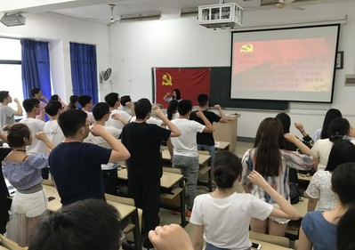 6月11日下午,轮盘游戏 2017届毕业生党员在教3-106重温入党誓词。轮盘游戏党委副书记兼副院长于景宝、分团委书记乔祖琴、组织干事乔松岭、毕业班辅导员李娜和全体2017届毕业生党员参加。