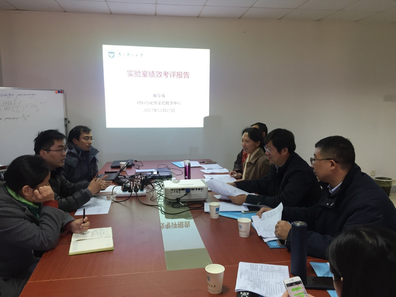 2017年11月27日,资产管理与实验室建设处高翔副处长组织专家,对我院实验中心进行2016-2017年度实验室绩效考评,考核内容包括实验室绩效考评记分表、自评报告及表中所有数据的支撑材料,如实验教学大纲、实验课安排表、实验室开放记录、大型贵重仪器设备使用记录、仪器设备资产账、仪器设备维修记录等能够支撑自评记分表中得分的相关材料。
