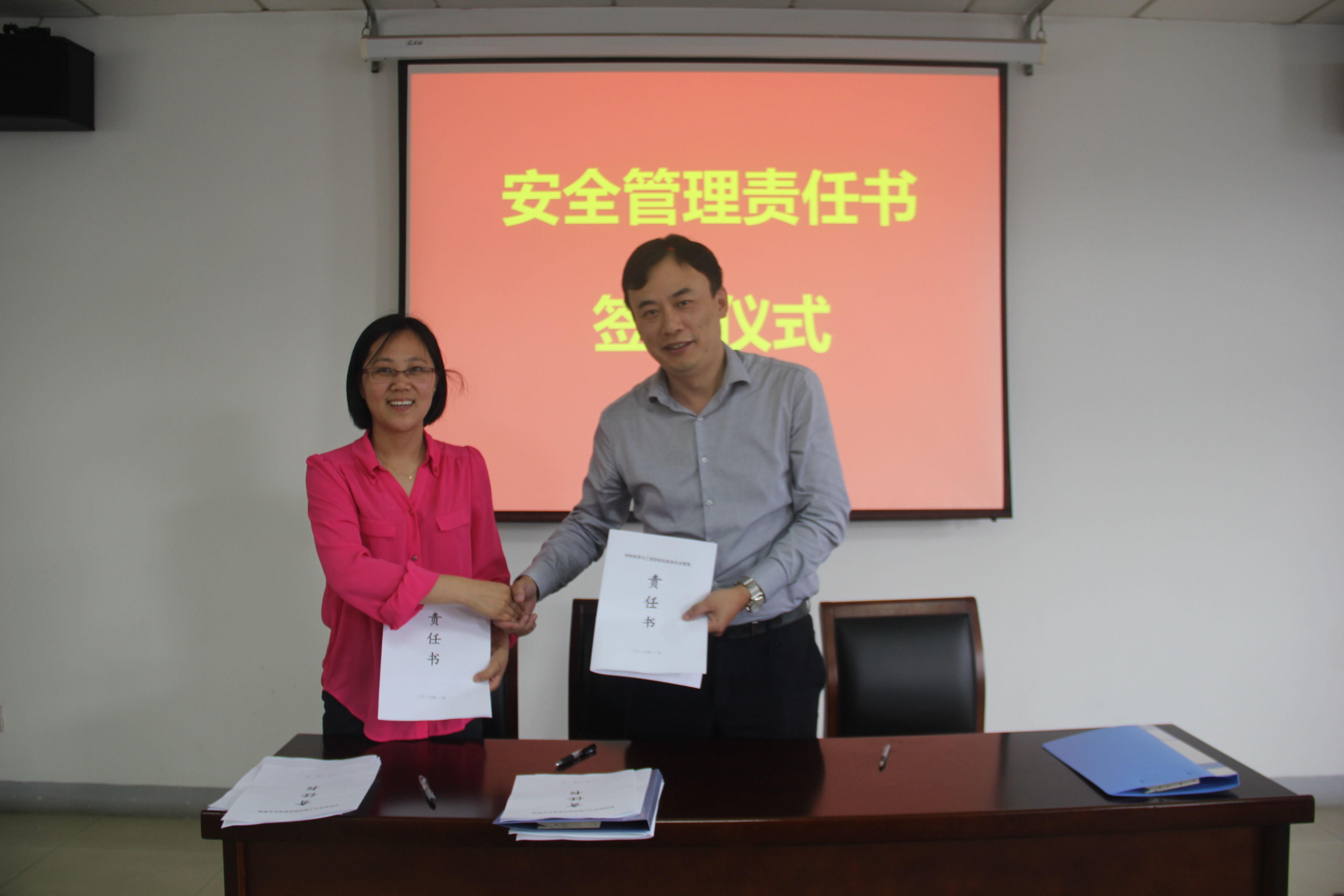最后,范曲立院长、赵允玉书记代表轮盘游戏与八大研究所所长、全体教职工签订实验室安全管理责任书,并要求各研究所加强日常安全教育,带领团队师生学习实验室安全管理制度等文件,确保每位师生都熟知实验安全的注意事项,并继续与所内的师生签订安全管理责任书,层层传达、层层落实安全责任,切实增强实验安全的红线意识和底线思维,改进实验习惯,提升安全管理水平,上下一心、全力以赴,筑牢实验室安全防线,为轮盘游戏各项事业安全发展、科学发展、长远发展保驾护航。