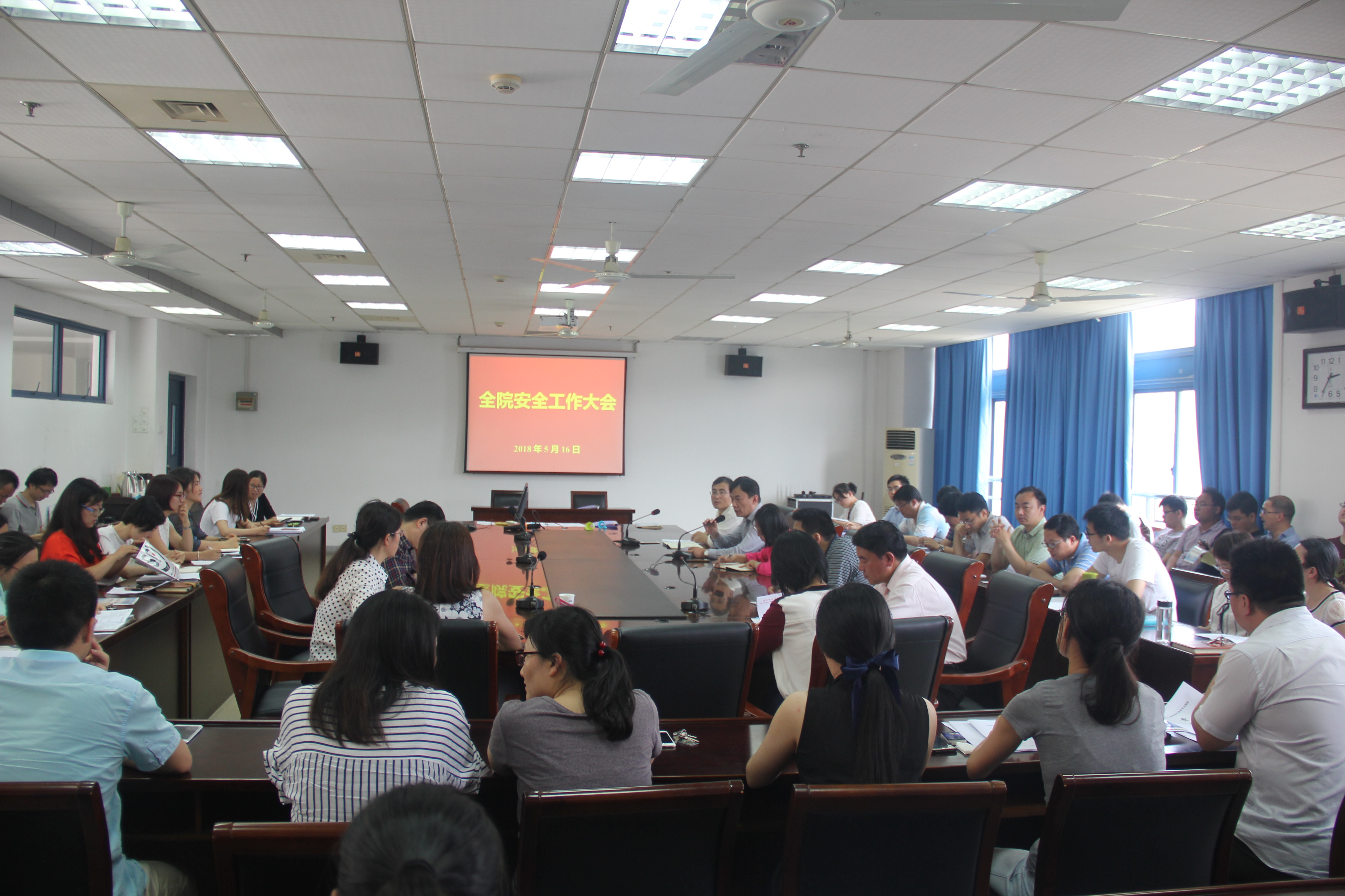 为深入贯彻落实国家、省市关于高校实验室安全的系列重要指示精神,统筹推进平安校园建设,加强实验室安全管理工作,5月16日下午,我院在材料学科楼会议室召开全院安全工作会议,院实验室安全委员会领导小组组长范曲立院长、赵允玉书记,副组长解令海教授,成员陈润锋副院长、沈清明副院长、于景宝副书记、陈淑芬教授等出席了会议,各系、研究所、中心负责人和全体教师参加了会议,会议由解令海副院长主持。