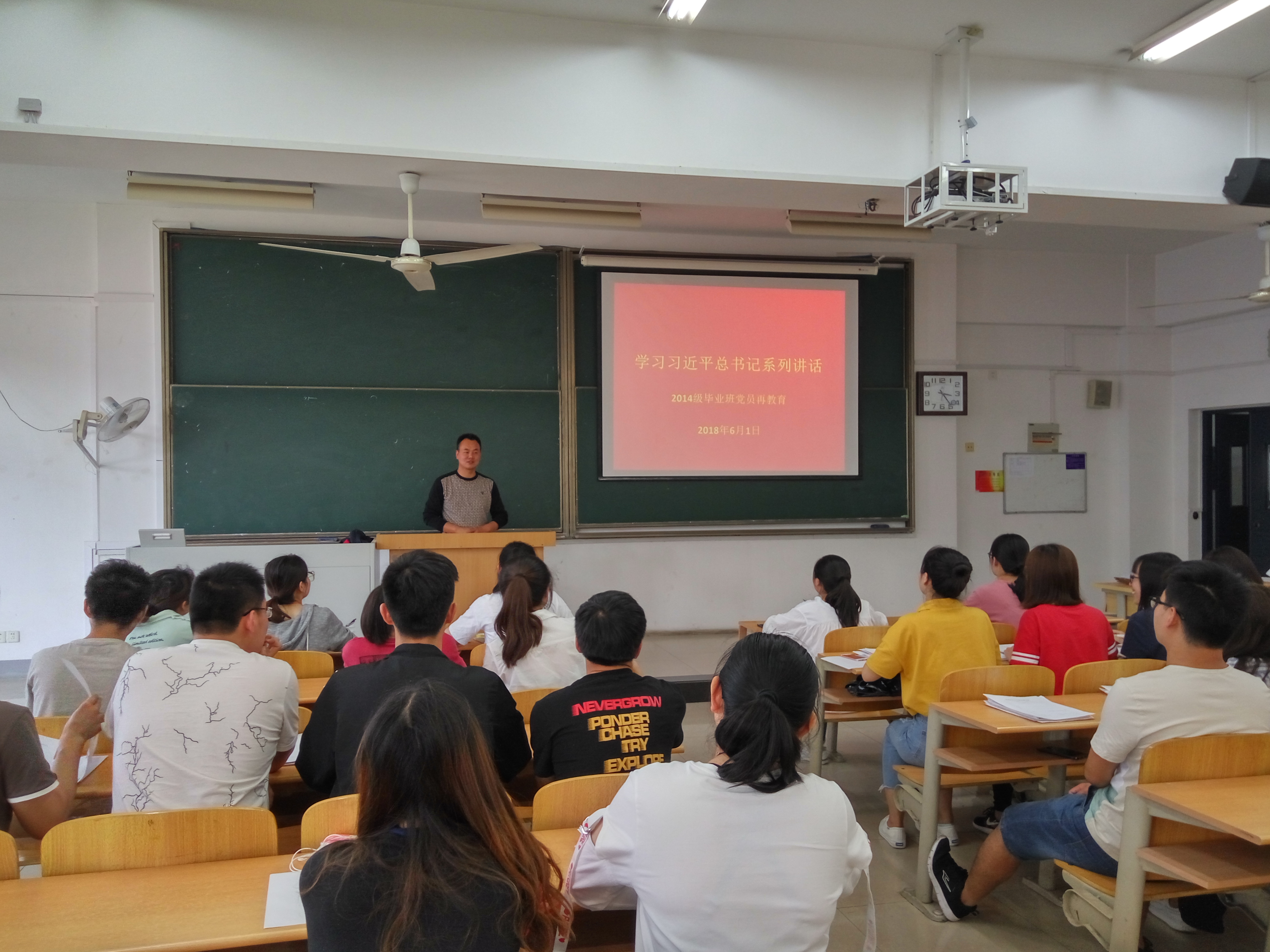 2018年6月1日,轮盘游戏 学工党支部在教4-309教室,组织即将毕业的毕业生开展重温入党誓词,学习习近平总书记系列重要讲话内容的毕业班党支部活动。