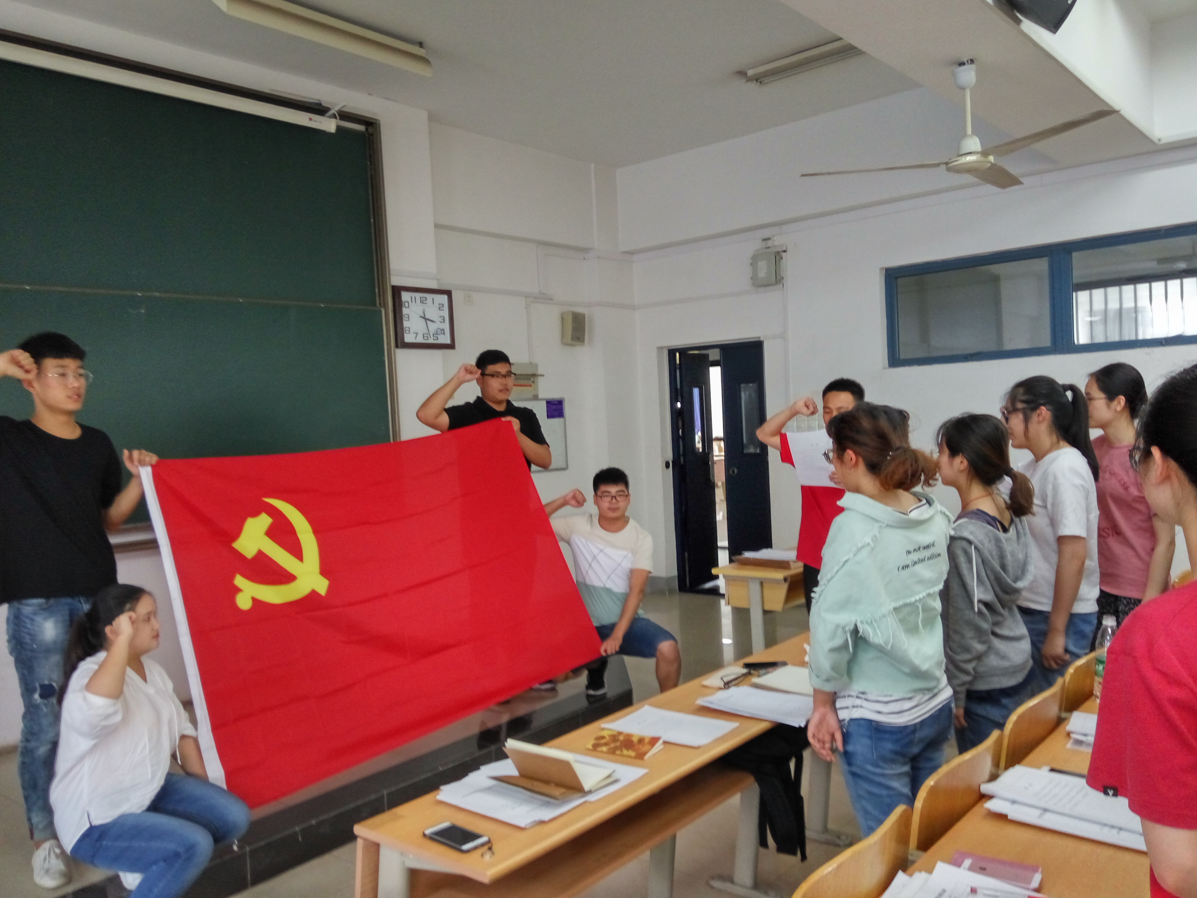 然后,在学工支部副书记修尉峻同志的带领下,我学工支部的全体党员对着党旗再一次宣读入党誓词。面临着即将到来的毕业季,希望毕业班党员能够牢记自己党员的职责和义务,努力成为其模范带头作用的好党员。