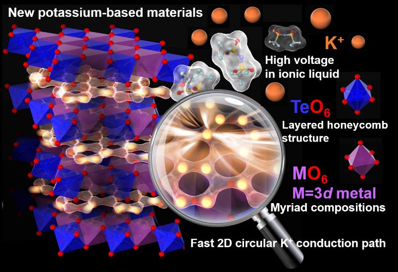近日,由轮盘游戏 轮盘游戏 、省部共建有机电子与信息显示国家重点实验室培育基地、IAM科研团队成员黄镇东副教授参与的中日国际合作团队日前在长期合作研究的基础上,于高电压钾离子电池正极材料和高钾离子迁移率固体电解质的研究领域取得了突破性的重大进展,成功开发了一类拥有供钾离子快速迁移通道的4V蜂窝状过渡金属碲酸盐(K2/3M2/3Te1/3O2)正极材料和快速钾离子导体。相关研究成果于2018年9月20日正式在线发表在《Nature Communications》杂志上,并被编辑选中于Nature Communications的官方主页上重点报道。该国际合作团队是由日本国立研究开发法人产业技术综合研究所电池技术研究部下属新一代蓄电池研究组组长鹿野昌弘博士、首席高级研究员Hikari Sakaebe博士领导,研究员Masese Titus博士主持,日本立命馆大学生命科学部应用化学科折笠有基副教授和我院黄镇东副教授共同组成。