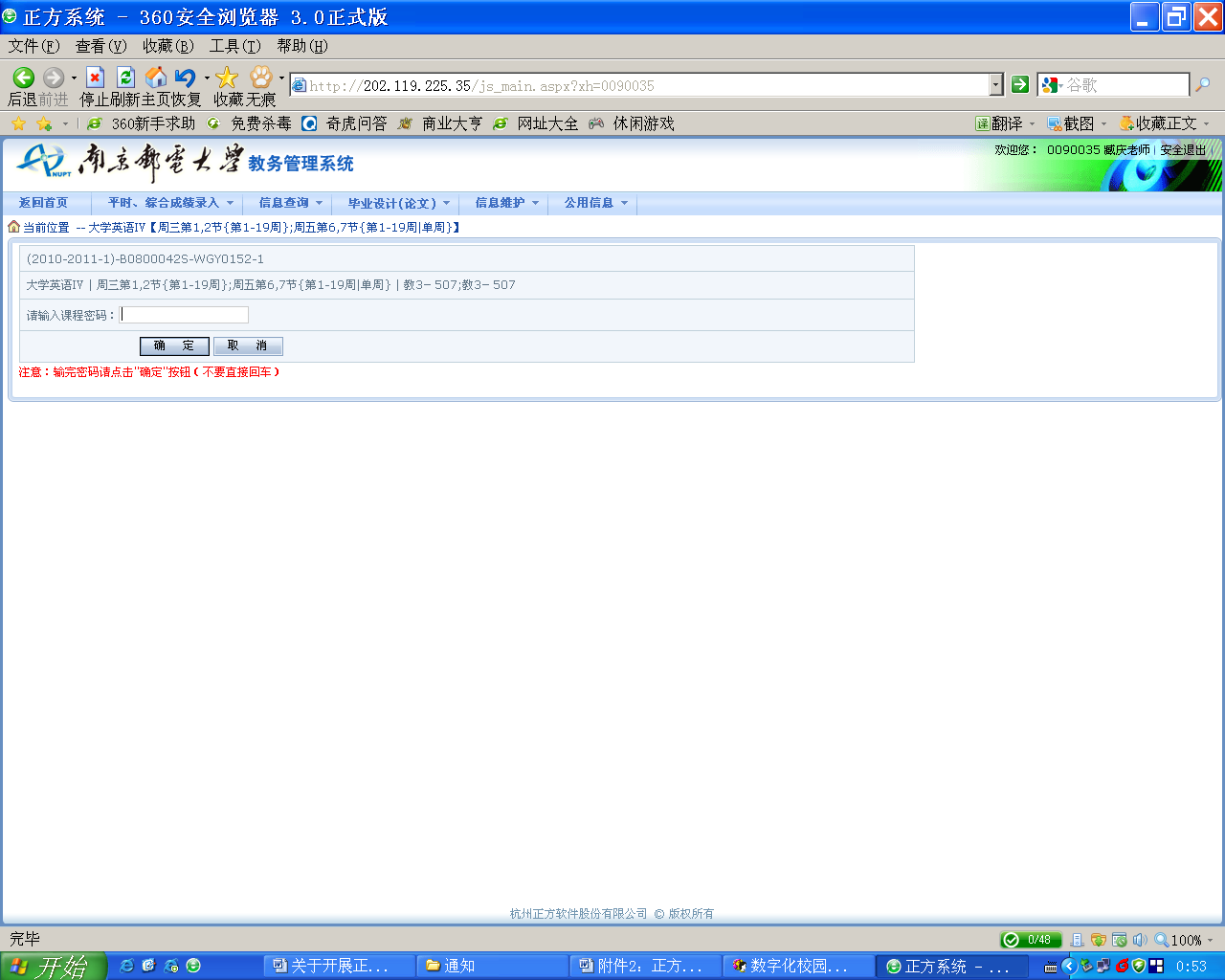 选择相应的教学班,输入课程密码(所有课程密码均为登录密码):