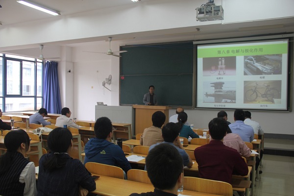 沈清明副院长在授课竞赛前进行了讲话,轮盘游戏非常支持和鼓励新进青年教师参与本科教学工作,重视青年教师的成长。在轮盘游戏现有科研团队基础上成立教学科研团队以及课程群,拟建立有机化学、无机化学、物理化学等以教授为核心的课程团队。同时,轮盘游戏也对授课竞赛设立丰厚奖励,鼓励青年教师积极参与。