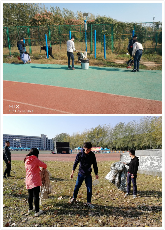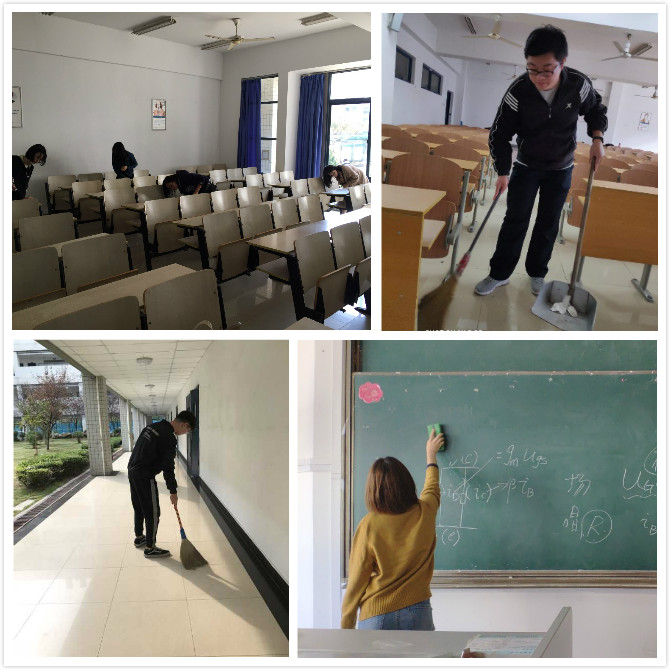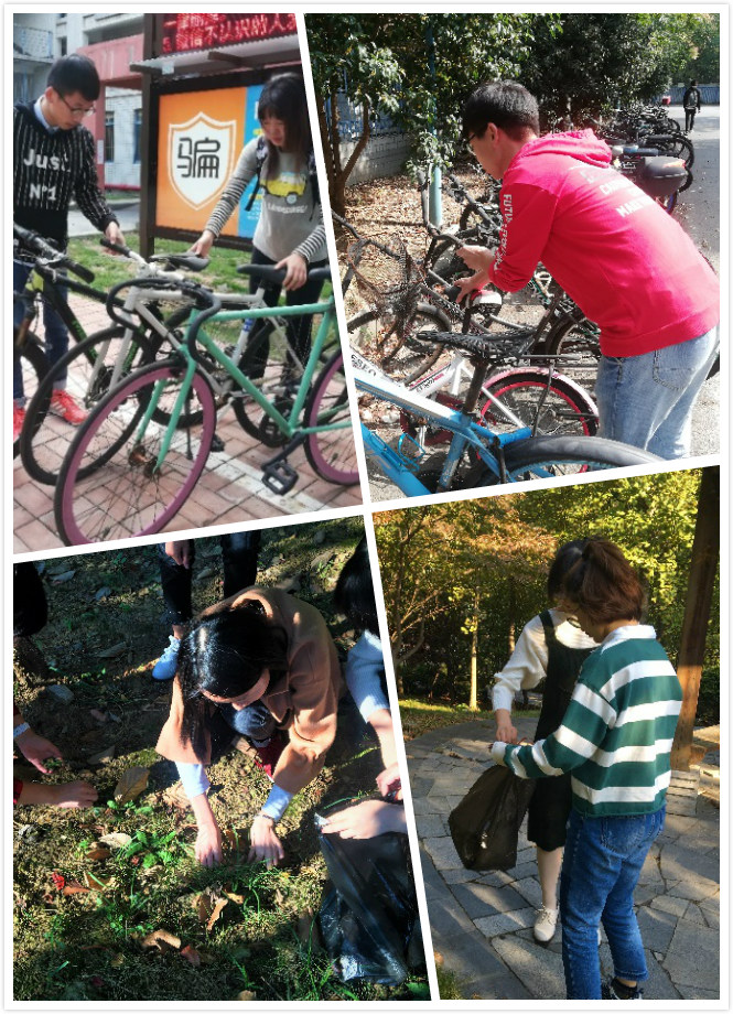 各小组分别来到了学校的鼎山、操场、教室、校园公共区域等地进行了义务劳动。在南、北操场上,积极分子们利用从宿舍带来的工具,对操场进行拉网式的清扫。在看似整洁的田径场上依然存在不少的垃圾,特别是有许多白色垃圾、散落的饮料瓶、快递包装等。在鼎山上,男生们集中清理了一堆废弃饮料瓶和废纸片;女生们则更细腻一点,小心翼翼捡起地上的玻璃残渣和一些零碎的垃圾。大家不放过任何一个角落,也不怕弄脏衣服,忙得不亦乐乎。在3号、4号教学楼内,女生打扫教室,男生打扫走廊。有的捡拾垃圾,有的扫地拖地。在大家的共同努力下,将教学楼打扫的焕然一新,为同学们创造了一个干净整洁的学习环境。同学们对还对教室周围的自行车区域进行了集中清理,并将散落的自行车摆放整齐,在大家齐心协力地努力下,宿舍周围停车区域重回整齐的模样。