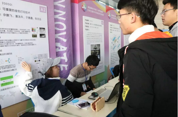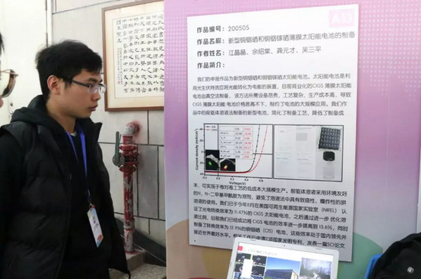 最终,经过激烈的答辩与展览,我院六个项目分别都获得了不错的成绩。新型铜铟硒和铜镓硒薄膜太阳能电池制备获得了发明制作类一等奖,可重复的绿色打印技术和虚拟仿真技术在SFX实验中的教学应用获得了发明制作类二等奖,燃料污水处理用木质素复合水凝胶的制备及研究获得了发明制作类三等奖,二硫化钼传感器平台用于恶性肿瘤早起检查获得了自然科学论文一等奖,增强单线态氧化率的近红外吸收BODIPY光敏剂用于高效的光动力治疗获得了自然科学论文三等奖,祝贺他们。