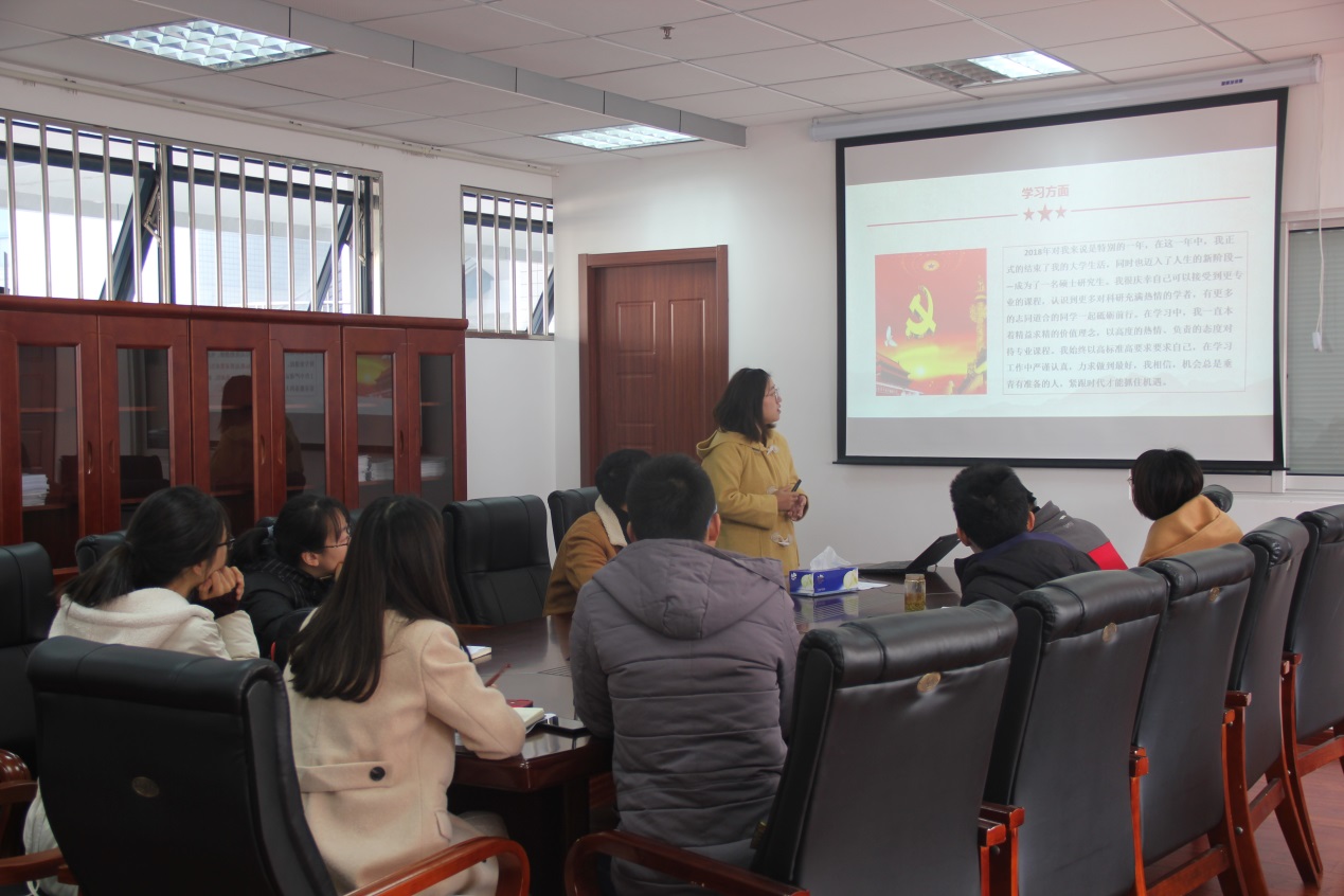 2018年12月12日上午,我院2018级研究生党支部在教五314会议室召开了预备党员转正答辩会议。会议讨论关于马晨曦等九名同志转为正式党员的问题,出席本次转正答辩会议的有院党委副书记于景宝、辅导员陈骏、组织员刘丽娜老师以及各位党员代表和群众代表。