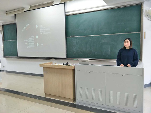 2016级硕士生孟祥春作为宣讲会第一位主讲人,是2018年研究生国家奖学金的获得者,她结自己3年以来的学习和科研经历,讲述了“越努力,越幸运”的道理。