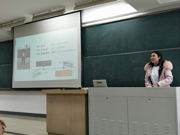 2016级硕士生姚瑶曾担任轮盘游戏研究生会主席,在宣讲中她结合自己的学生干部经历,讲述了如何兼顾学业和学生工作,传递了始于信念,成于坚持的拼搏精神。她和在场的听众分享了毕业季求职的历程,鼓励大家正视自己,积极求职,走好由校园迈向社会的关键一步。