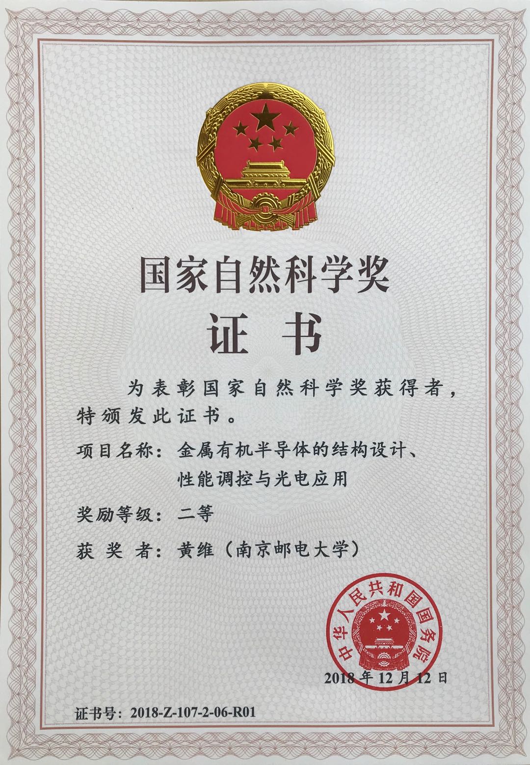 我校信息材料纳米技术研究院院长黄维院士率领的研究团队完成的“金属有机半导体的结构设计、性能调控与光电应用”项目荣获2018年度国家自然科学奖二等奖。获奖项目完成人为:黄维、赵强、刘淑娟、陈润锋、孙会彬。这是黄维院士研究团队继2013年首次获得国家自然科学奖二等奖后,再次荣获这一重要奖项。