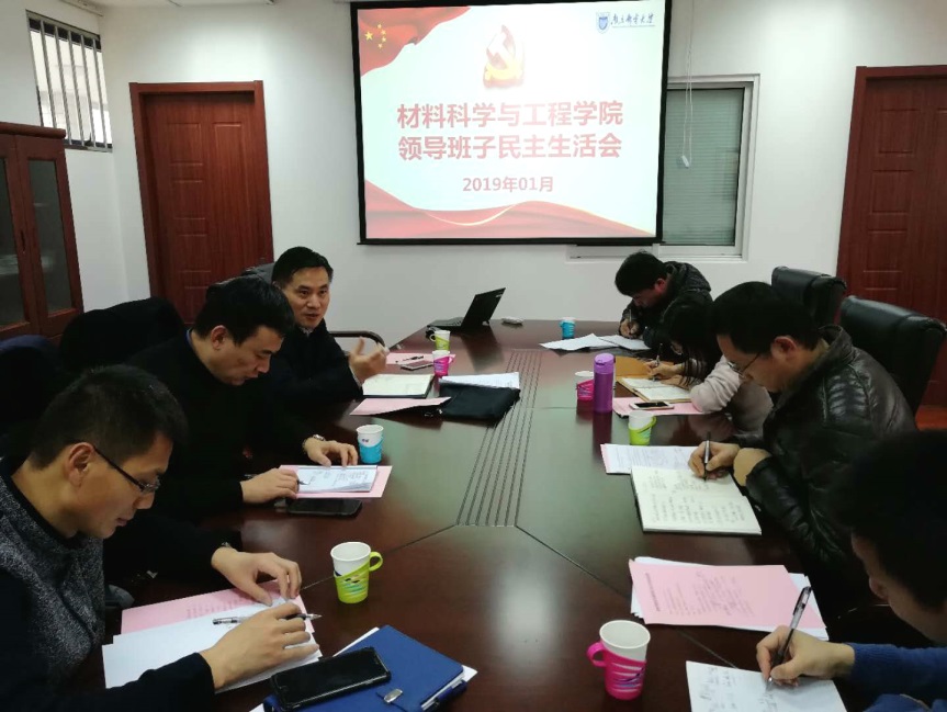 2019年1月15日下午,轮盘游戏 在材料学科楼314会议室召开2018年度党员领导干部民主生活会。校党委常委、副校长蒋国平教授到会指导。轮盘游戏副院长陈润锋、院党委副书记兼副院长于景宝参加会议,院长范曲立、副院长赵强和沈清明列席会议,会议由院党委书记赵允玉主持。