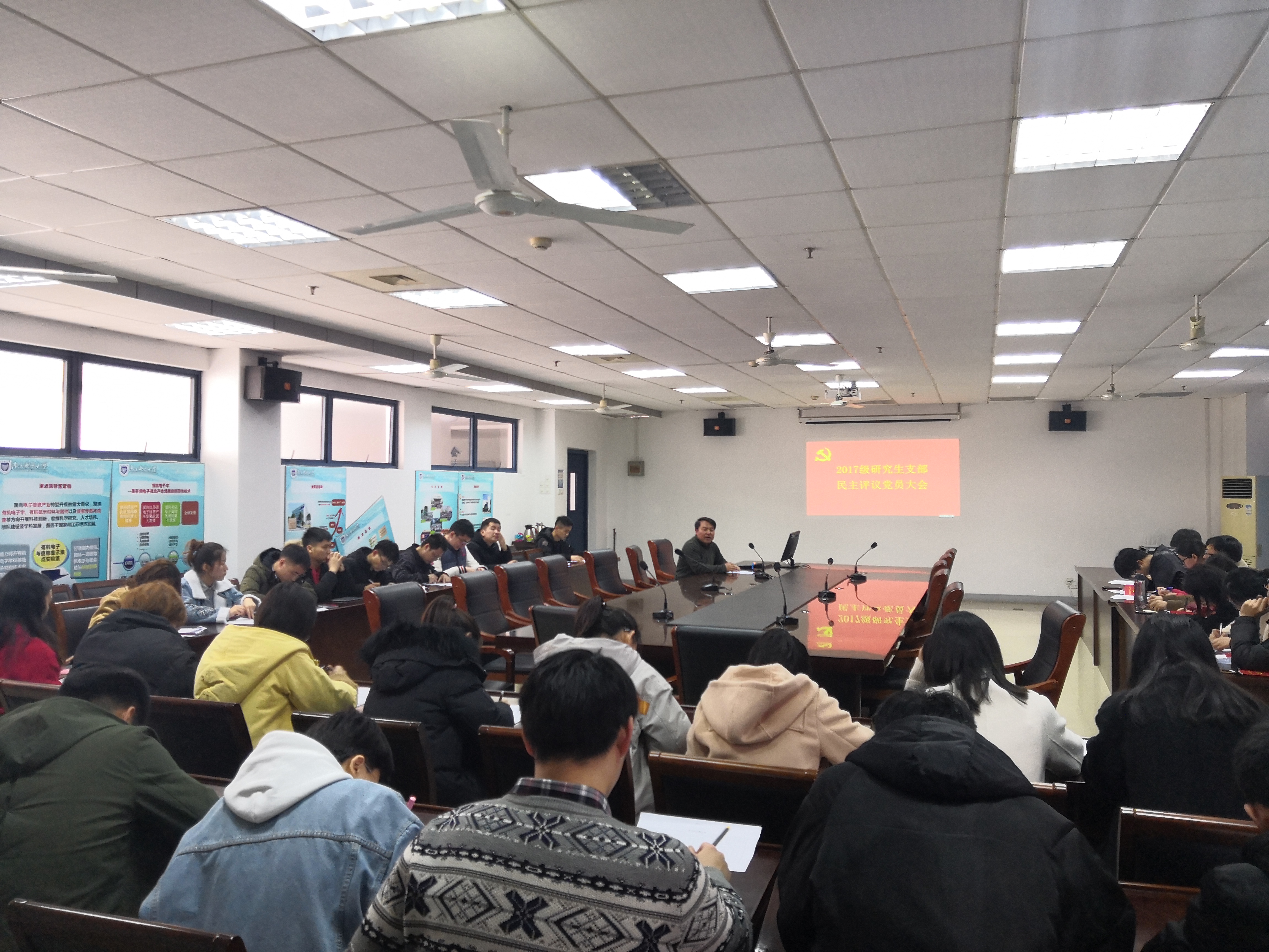 郑祥平同志接着代表17级研究生党支部委员会向党员大会述职,对2018年度党支部支委工作、支部活动和联系群众等方面进行逐一阐述,并就党支部目前存在的问题进行深入剖析,提出整改方案。随后,党员对党支部委员会的工作、作风等进行评议,并进行了党员民主评议,民主评议党员等工作。