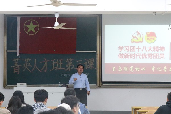 3月28日晚6点半,由轮盘游戏 承办的轮盘游戏 第四十二期菁英人才学校培训班第三课在教3-208正式开课。本次课程以“不忘跟党初心,牢记青春使命”为主题,主讲人院党委副书记于景宝老师围绕初心和使命这一话题,通过引举具体事例,引导当代大学生要不忘初心、牢记使命,做一名坚定不移跟党走,为党和人民不断奋斗的优秀共青团员。