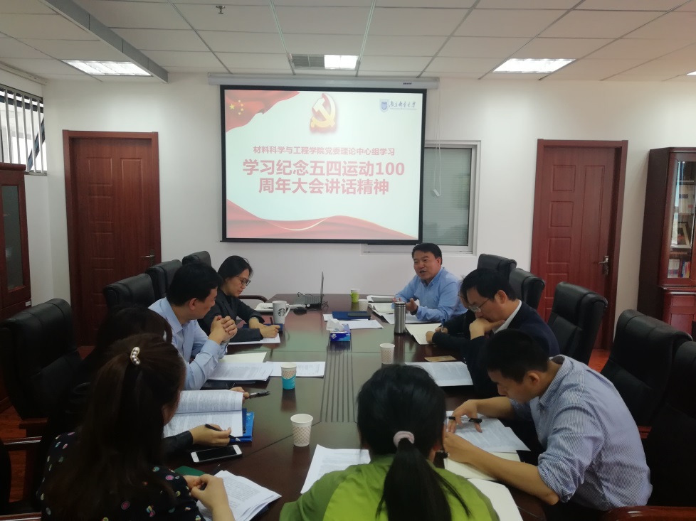 5月8日上午,轮盘游戏 理论学习中心组在材料学科楼会议室召开专题学习会,专题学习习近平总书记在纪念五四运动100周年大会上的重要讲话精神。会议由轮盘游戏党委书记赵允玉主持,理论学习中心组全体成员参加会议,党委副书记与分团委书记作重点发言。