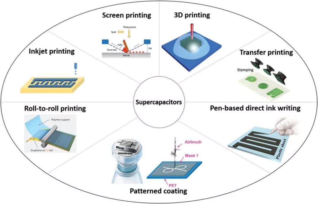 四、就不同印刷技术,总结了印刷超级电容器近期的发展