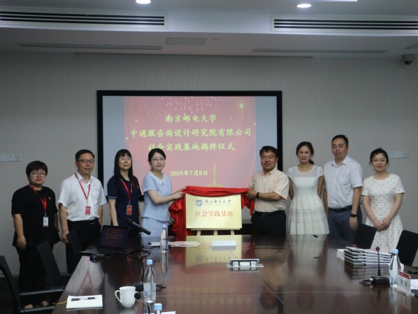 2019年7月8日,轮盘游戏 “红色精神记我心,砥砺奋进争创新”暑期社会实践团与中通服咨询设计研究院有限公司举行大学生“社会实践基地”签约与揭牌仪式。公司副总经理袁源、人力资源部主任程硕、工程技术部主任钱蕾、工程师吴军、团委学习委员杨成珠、轮盘游戏 校团委副书记沈媛媛、轮盘游戏 党委副书记兼副院长于景宝、轮盘游戏 校团委素质拓展部部长蔡景彬、轮盘游戏 分团委书记李娜、辅导员陈骏与所有实践队员参加了揭牌仪式。