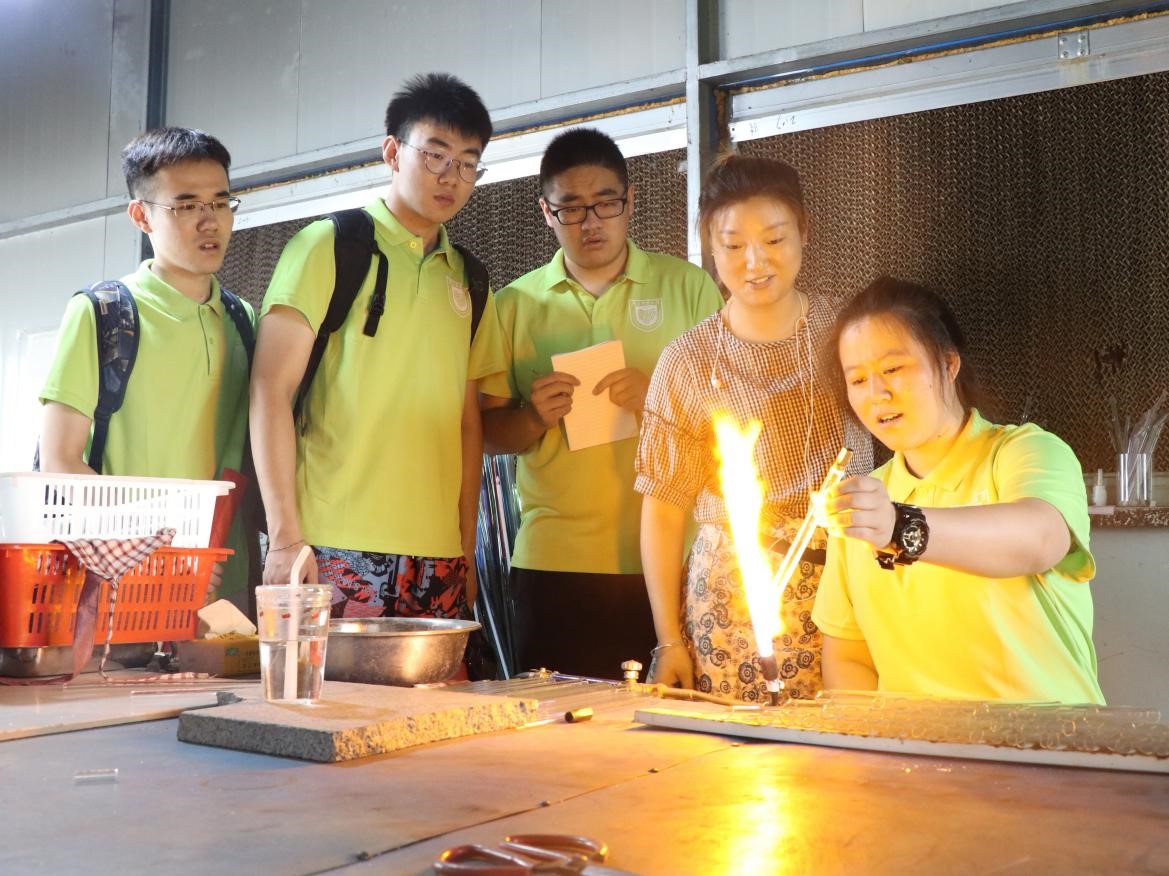 随后俞进雷介绍了当地的特色产业玻璃工艺。各种玻璃工艺展品设计新颖,创意独特,展现了建河村在新农村建设中取得的重大成就,实践团的同学们也亲手参与,体验制造过程。