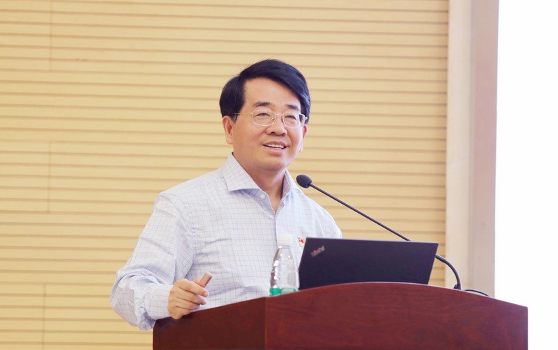 校长叶美兰教授主持思政课,在这堂特殊的思政课上,黄院士回忆自身求学、工作和科研经历,从家国情怀是知识分子的人生底色、担当作为是知识分子的动力源泉、开拓创新是知识分子的时代责任三个部分作了讲解。叶美兰校长点评黄院士“鲜衣怒马剑仗江湖,归来南邮仍是热血少年”,感谢黄院士心系轮盘游戏发展,心系青年学子成长成才,牺牲假期时间专门来校指导工作。她号召全院老师以黄院士为榜样,学习铁人精神、女排精神,面对困难挑战知难而上敢于拼搏;勉励青年学子树立正确的价值观,“不忘初心、牢记使命”,成为有家国情怀、有责任担当的社会栋梁,共同努力把南邮建成电子信息领域特色鲜明的高水平研究型大学。