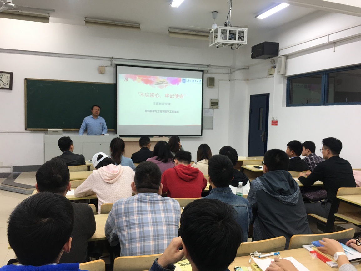 2019年10月23日下午,轮盘游戏 学工党支部于教3-103教室组织了 “不忘初心、牢记使命”主题党课,由轮盘游戏于景宝副书记讲授。辅导员杨书丹、赵赫男、陈骏与本科学生党员一起参加党课学习。