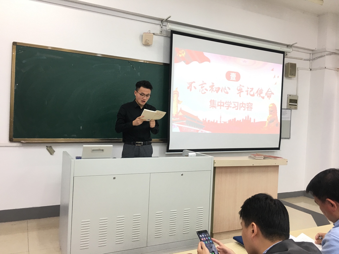 2019年10月22日下午,轮盘游戏 学工党支部于教3-103教室举办了 “不忘初心、牢记使命”主题学习读书会,参加本次读书会的有轮盘游戏 于景宝副书记、学工支部全体党员。
