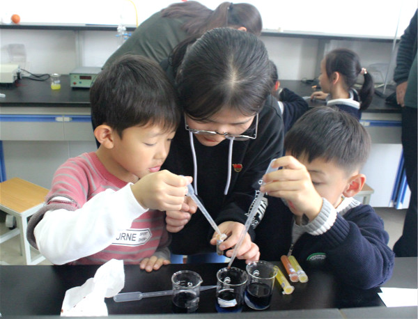 实验中心支部联合办公室支部、研究生各支部开展公益课堂志愿服务活动,对接南师附中仙林小学南邮校区一年级学生开展“趣味化学公益课”活动,旨在突出化学特色,向小学生们展示平时接触不到的化学实验,传播化学知识,更将化学实验与实际中的现象联系起来,让同学们在有趣的实验中感受化学的魅力。