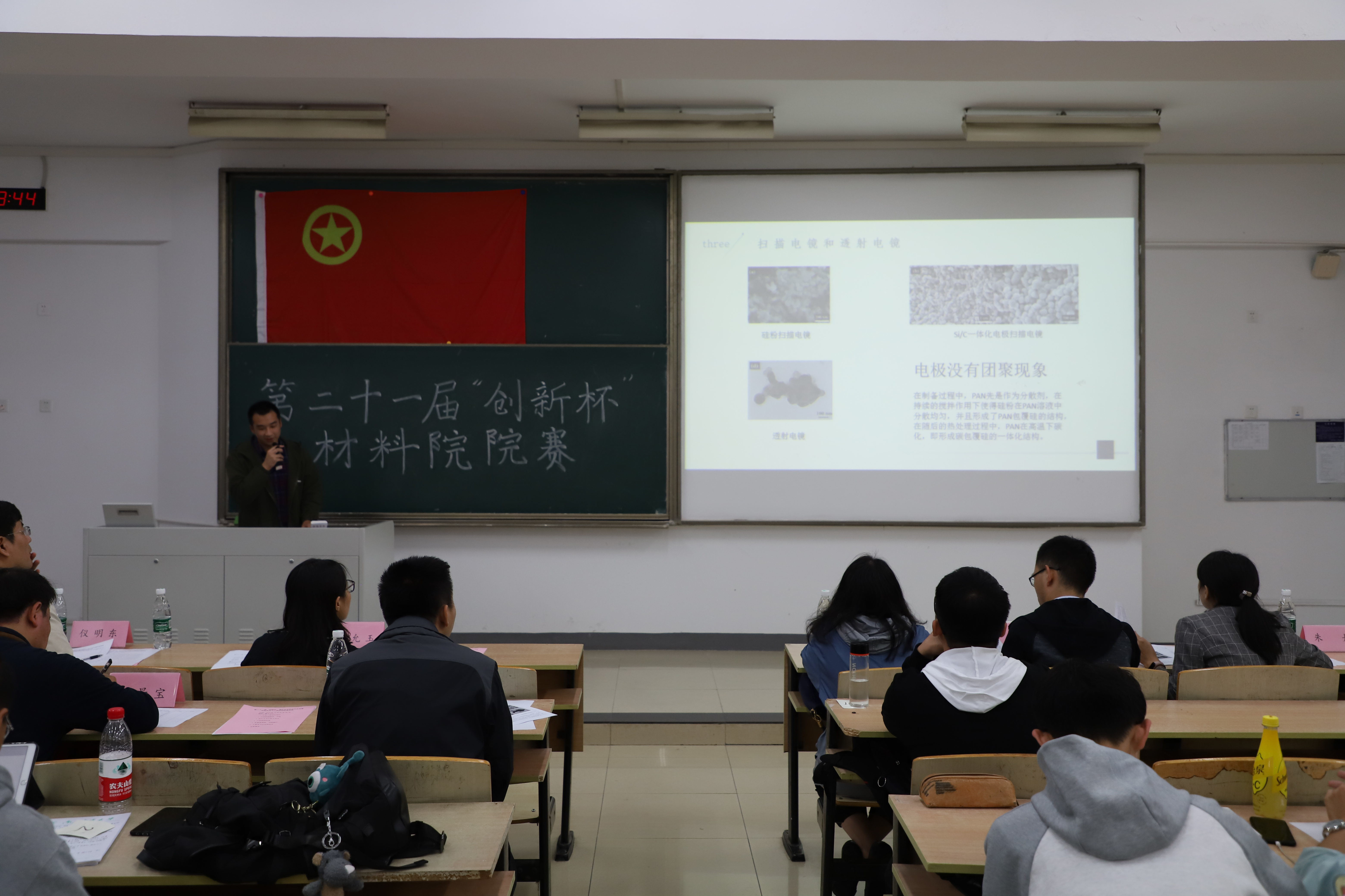 为了进一步营造优良的学习氛围,促进轮盘游戏 学生课外学科竞赛活动的蓬勃开展,增强大学生课外实践动手能力,发现和培养一批在创业创新方面有作为、有潜力的优秀人才,同时挖掘、选拔出优秀作品参加学校“创新杯”大学生课外学术作品竞赛,轮盘游戏 第二十一届“创新杯”大学生课外学术科技作品竞赛于10月25日在教二213举行。院党委书记赵允玉、副院长沈清明、副书记兼副院长于景宝、材料物理系系主任仪明东、高分子材料与工程系陈莹老师、材料化学系陶冶老师、朱丹老师担任本次比赛的评委。