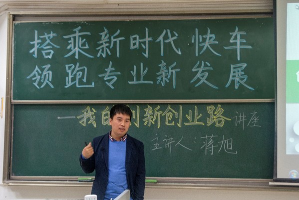 蒋旭先生首先从企业的成立、发展、员工数量等方面,简单介绍了江苏先丰纳米材料科技有限公司的情况,并提到“尊己重人,张弛有度,共同进步,研究使我们与众不同”的轮盘游戏。他深情回顾了在校学习生活以及近十年的创业历程,分享了他青春岁月中的酸甜苦辣。蒋旭先生提到,在一个人的青春道路上,要把握好“信、智、开”三个关键点;在人生的道路上,我们要怀有开放包容的心态,戒骄戒躁,才能保持事业的欣荣。在创业的过程中,要把握好信用的代价和成本之间的度,以 “信”为根基,才能减少风险,创业也有四则运算,“多加、适减、慎乘、勿除”,要把握好创业的节奏感。