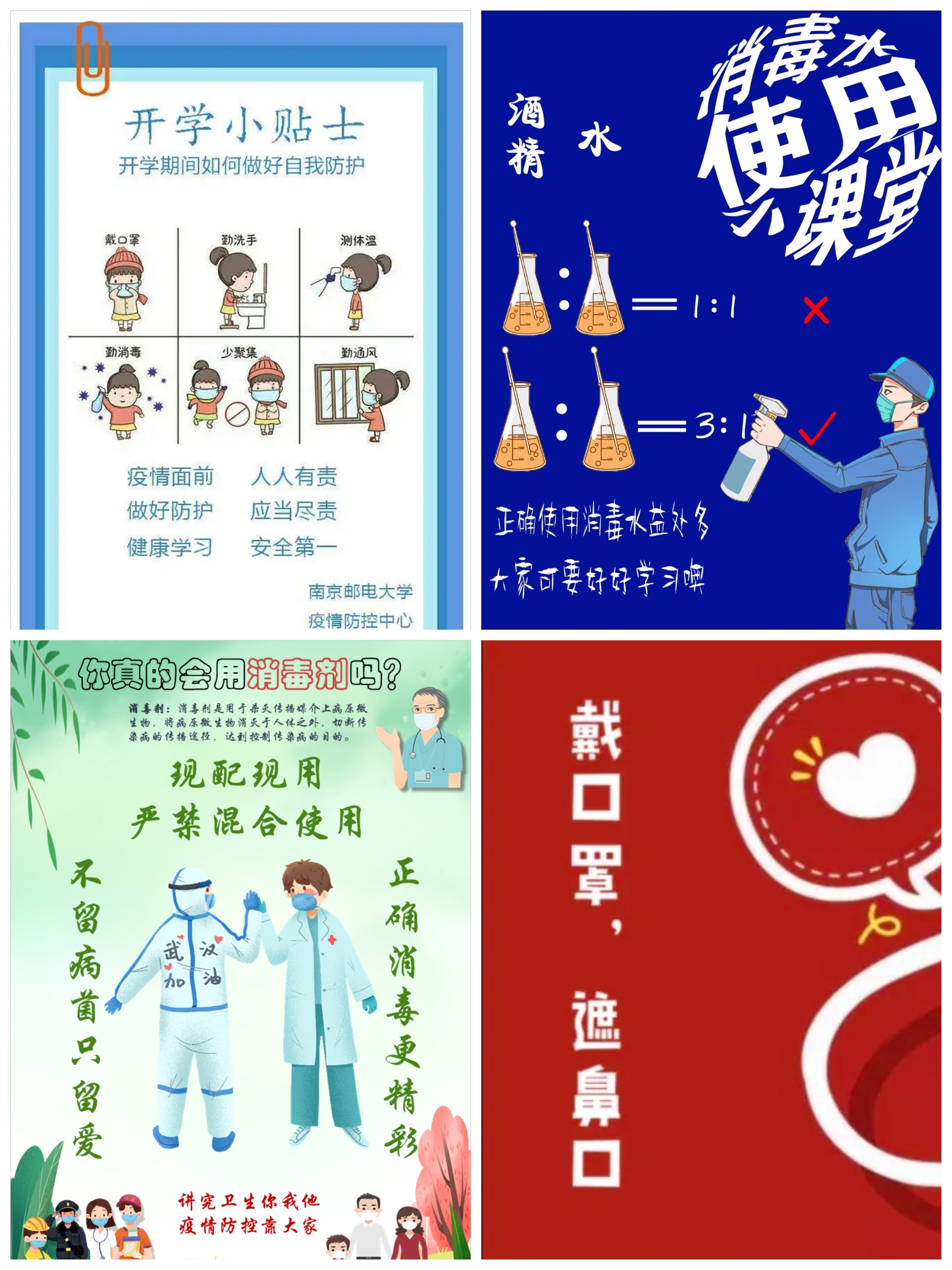 “防疫用品不可少,安全使用最重要”,活动第三轮针对防疫用品不当使用可能带来的伤害,举行防疫标识制作大赛,号召大家在日常生活中安全正确使用消毒产品,保护同学们的身体健康。同学们利用手中的画笔或电子设备绘制出五彩斑斓的安全标识。