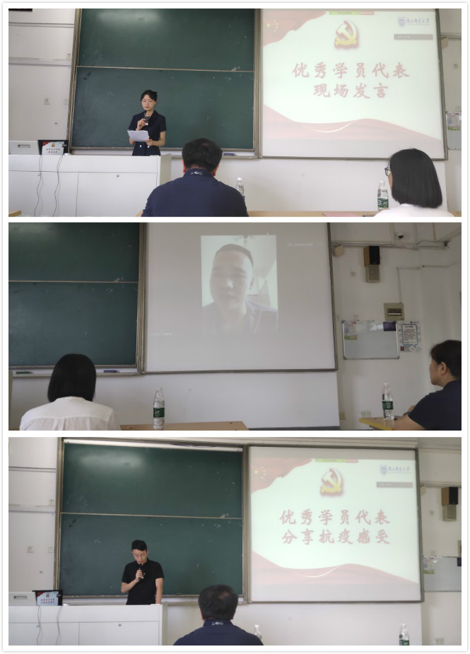 培训班最后一节课,特别安排刘磊同学分享他作为入党积极分子参与家乡疫情防控工作的体会。刘磊同学向大家介绍了农村基层组织根据老百姓实际情况,想方设法编排顺口溜、小礼品奖励等方式挨家挨户进行防疫知识普及和防范措施教育。他表示这次志愿者工作是独特的,终生难忘,个人切实体会到党的领导力和执行力,体会到党关心每一位老百姓疾苦和生命安全。在今后的生活和学习中,他更加会以党员的高标准严格要求自己,争取早日加入中国共产党。