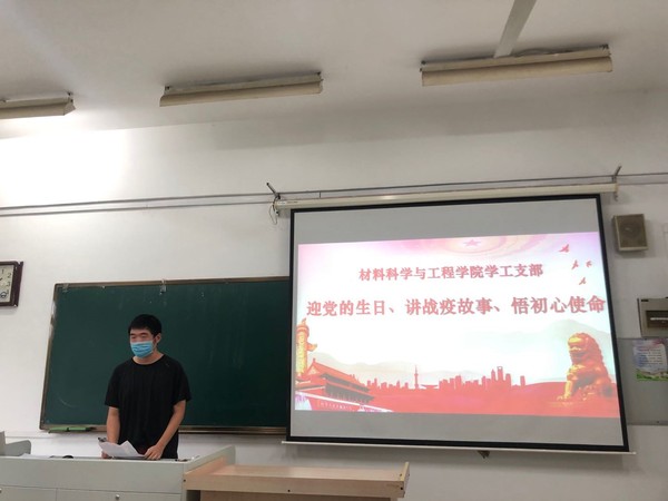 17级预备党员各自分享交流自身在疫情期间的所见,所闻,所感。蔡宇晴同学向大家分享了自己在抗疫期间的志愿行动,他加入社区志愿者参与巡逻测温,发放口罩,帮助行动不便的老人测量血压。傅彦翔同学向大家展示了一位一线医护人员和她母亲的家书,信中写道“十七年前你是抗击非典的英雄,是我的英雄,所以十七年后,我成了你。”同学们领悟到中国精神是一种传承,要将抗疫楷模的精神内化于心,外化于行。