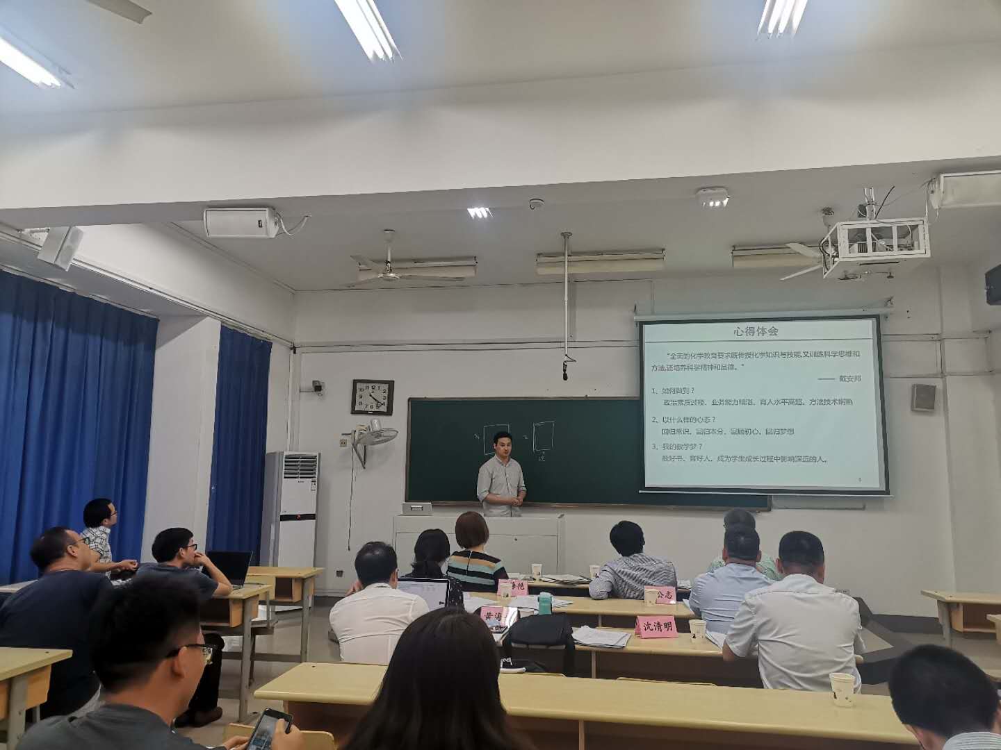 专家组成员根据新进教师的汇报内容,导师制手册的完成情况,对六位教师的表现逐一进行了点评,综合考察了新教师仪表仪态、语言表达、专业知识与能力、板书与教学设计等几个方面的表现。在肯定优点的同时,重点对每位新进老师试讲中存在的问题及不足之处分别给出了具体的改进建议。青年教师们纷纷表示,学校提供了各种形式的教学观摩,涵盖课堂管理能力、学生管理能力、教学的组织与准备等方方面面,受益匪浅。在具体上课和试讲过程中,还存在许多不足之处亟待改进。今后将多听课,多学习,注重教学方法的改进和教学经验的积累,在实践中不断提高教学水平。