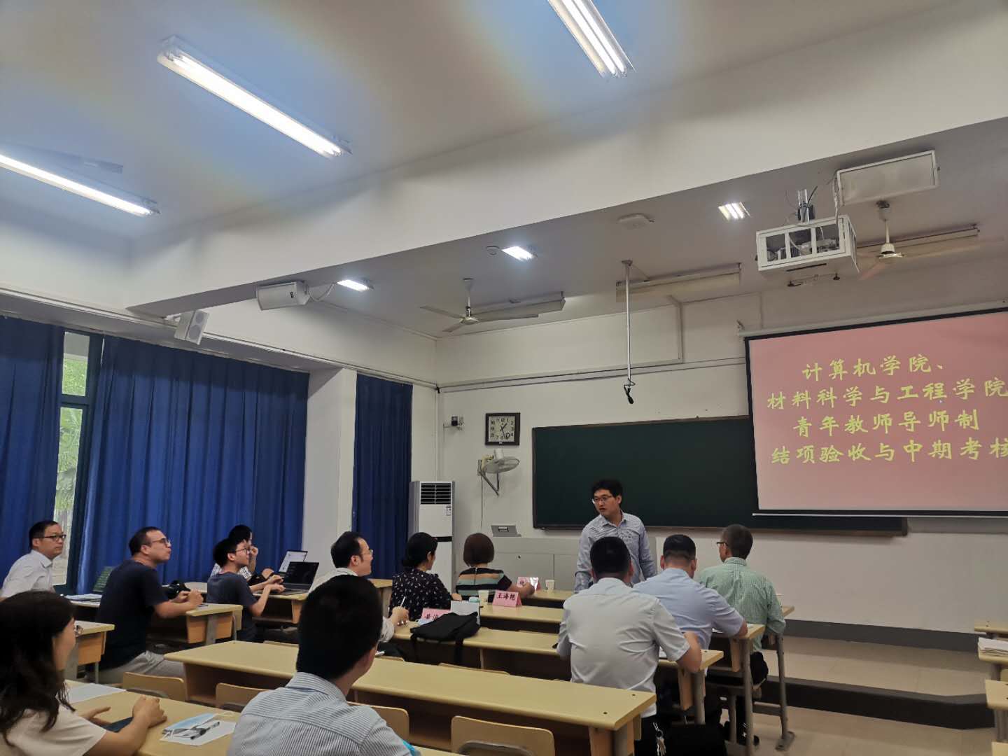 沈清明副院长担任专家组评委,听取青年教师的验收汇报及中期考核,会议由教务处教师发展中心李永涛主任主持,参加会议的还有各位青年教师的教学导师。