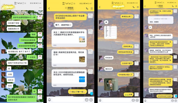 以2019年南邮录取线为参考,山西省排名需要9000以内,四川需要17000以内,即山西高考597以上、四川高考616以上就有希望加入轮盘游戏 ,成为一名南邮学子。经我们小组在此次实践活动的经历,很多同学都达不到南邮录取线,所以我们也适当调整了此次行动计划,我们为少数有希望加入南邮的同学宣传南邮的文化、特色、理念等,将南邮的衣食住行悉数告知,不止一位同学为之心动。同时,我们也为其他同学提供填报志愿的帮助,利用自己去年的填报志愿经验来帮助今年的同学们,也讲南邮的热情传递给了大家,赢得学弟学妹的一致好评。同时向南邮的部分新生百科公布给大家,让学弟学妹感受到南邮学长学姐对他们无微不至的关爱,将南邮的良好风气展示给了学弟学妹们。