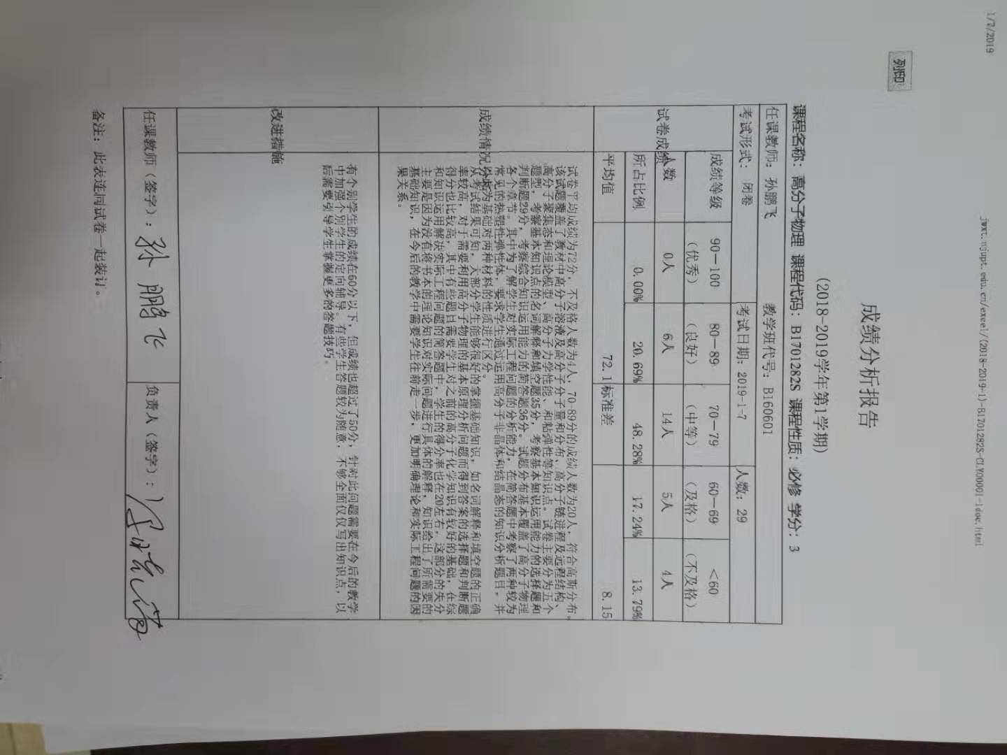 7.成绩分析报告(一式二份,任课教师无需单独找系主任签字)