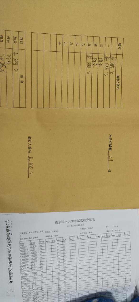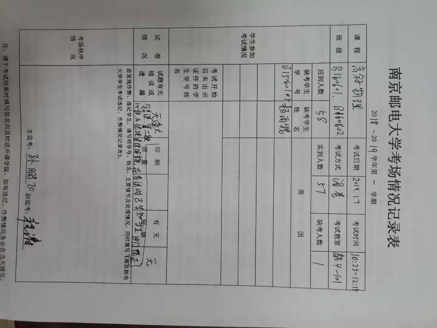 3.补考学生的材料单独存放:包括试卷、成绩登记表(一式两份)