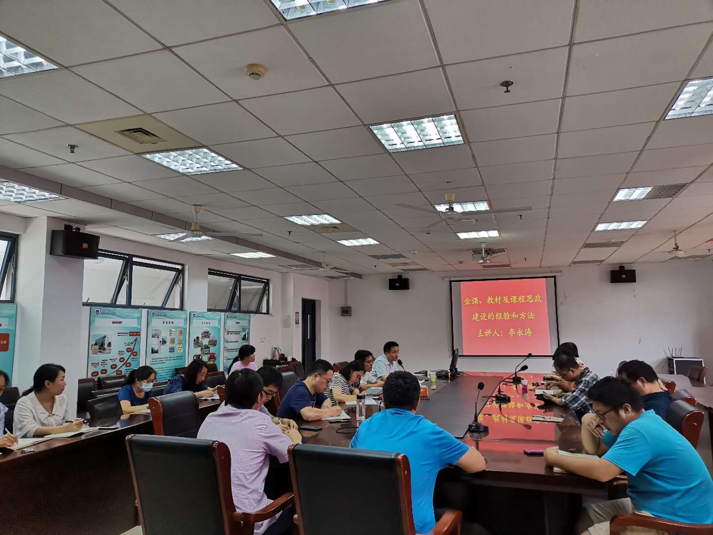 随后,李处长开展了题为“金课、教材、课程思政建设交流与汇报”的讲座,分享了一流课程建设、重点教材建设及课程思政建设三个方面的经验做法。一流课程与一流专业相依托,建设省品牌专业,同时申报国家一流专业和省一流专业作为一流课程的重要支撑。李处长在报告中介绍了金课建设的内涵,课程是由各个环节构成的,对于金课来说,每个环节都需要高要求,需要“金部件”,包括:金教材、金课程、金案例、金实验,这些重要的部件构成一个有机的整体——金项链,再进一步就是课程群里的各个课程构成一个有机的整体,发挥更大的作用。同时,李处长也阐明了线下一流课程的遴选原则,扶优(优质教学团队)、扶强(强势学科基础)、扶特(特色专业课程)、扶需(国家发展急需),这为轮盘游戏申报一流课程指明了方向。在重点教材建设方面,根据“十三五”江苏省高等学校重点教材建设实施方案(修订版)文件精神,本科高校教材建设作为高校学科专业建设、教学质量、人才培养的重要内容,纳入“双一流”建设和考核的重要指标。在课程思政建设方面,李处长指出需要全面推进课程思政建设是落实立德树人根本任务的战略举措,培养什么人、怎样培养人、为谁培养人是教育的根本问题,立德树人成效是检验高校一切工作的根本标准。立志探索形成体系化、可推广的“课程思政”教育教学改革标志性成果,构建具有特色鲜明、实效性强的课程思政育人模式。
