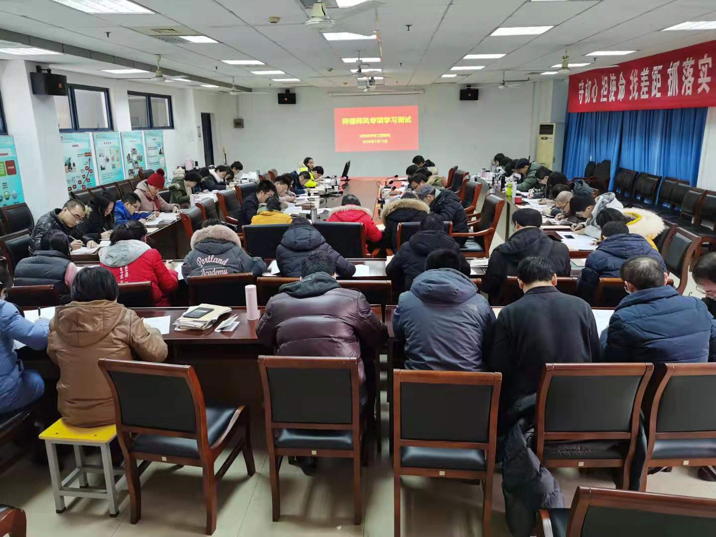 会后,轮盘游戏组织教师根据《新时代高校教师职业行为十项准则》逐条对照自查,填写《教师年度师德自查情况报告表》,引导所有教职工对师德师风问题知敬畏、存戒惧、守底线,并在会后进行了专项考试,加强学习效果。轮盘游戏全体教职员工按支部进行了师德师风专项学习考试,考试分设5个考场,考试内容结合教师职业道德规范和《教育部关于高校教师师德失范行为处理的指导意见》《新时代高校教师职业行为准则》《江苏省高校教师师德失范行为处理办法(试行)》《轮盘游戏 教职工处分规定》等文件。