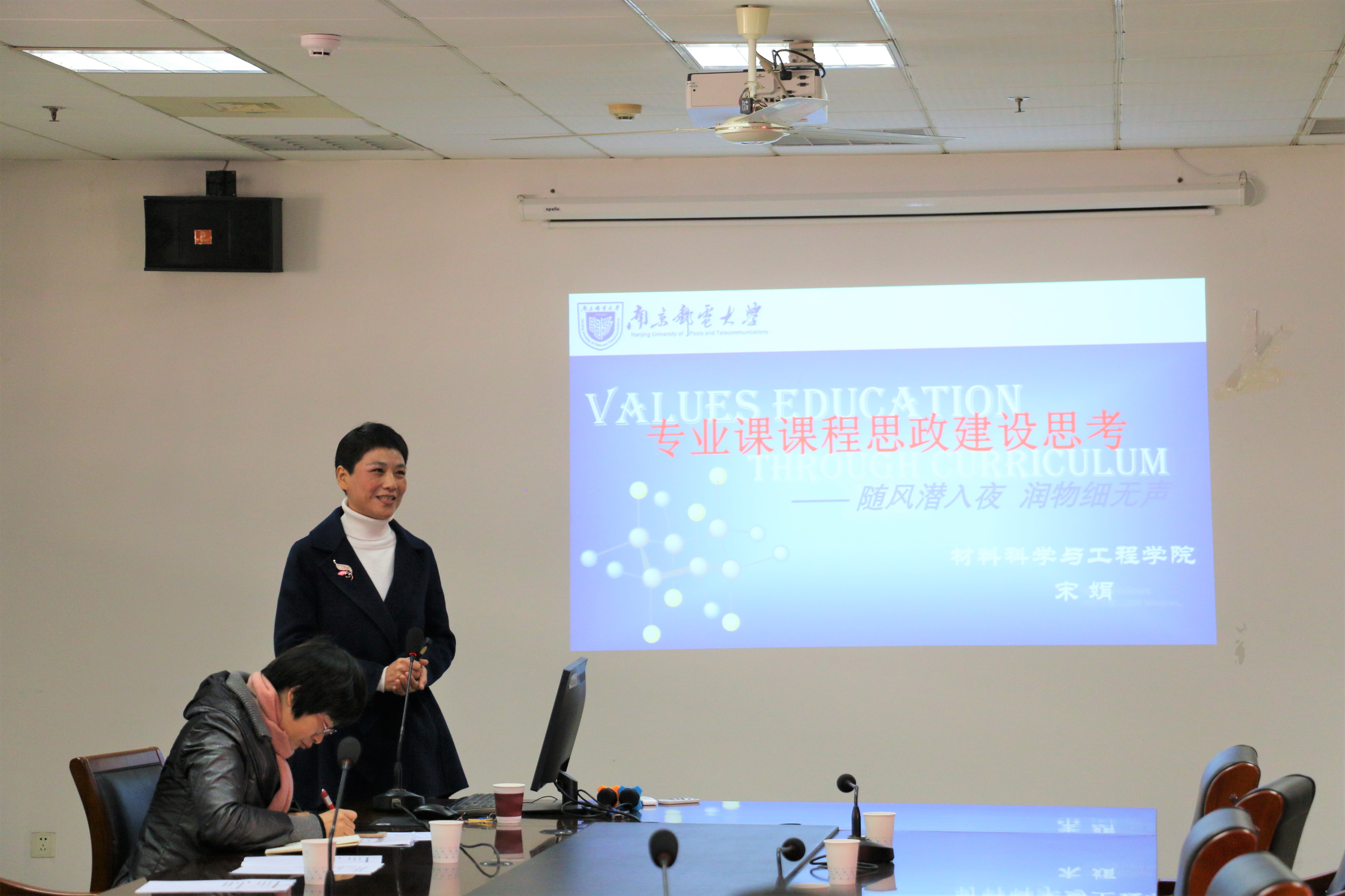 研讨会设“研究生思政课程改革和课程思政建设”讨论主题,邀请轮盘游戏教学标兵宋娟老师作了《专业课课程思政建设思考》的专题报告。宋老师从专业课课程思政建设的必要性、教学的方向、课程思政案例等方面进行了介绍,得到全体导师的高度肯定。
