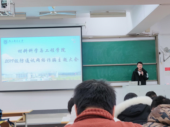随后,在防通讯网络诈骗主题大会中,辅导员王森老师强调了很多诈骗案件会利用我们的虚荣心、单纯、贪便宜等心理进行诈骗,我们要防范诈骗,警钟长鸣,要提高防范意识,加强对涉及钱财的通讯聊天的警惕与谨慎。
