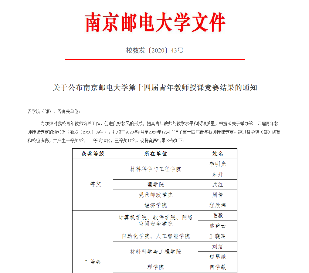 李明光老师加入轮盘游戏 轮盘游戏 以后,积极参加了为期一年的校青年教师导师制项目,在师德师风建设、教学方式方法、师生互动策略等多方面提升了自身的教育教学能力;2017年至今,先后加入了功能材料与工程物理两个教学团队,在教学团队的大力支持与帮助下由联合授课逐步过渡到独立授课,目前所讲授的《材料力学》、《液晶原理与技术》以及《光电材料设计与应用综合实验》等课程评教等级均为优秀;2020年参加轮盘游戏 与自动化轮盘游戏联合举办的青年教师授课竞赛,荣获二等奖;参加轮盘游戏 第十四届青年教师授课竞赛,荣获一等奖。
