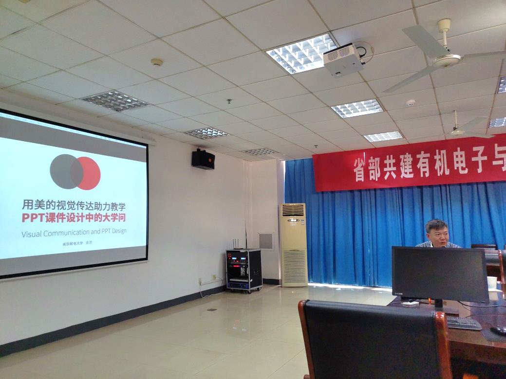 随后,余老师开展了题为《用美的视觉传达助力教学----PPT课件设计中的大学问》的报告。余老师根据周边标识、商标进行美的视觉引导。信息化教学进入互联网时代, PPT课件使用率逐渐增加,学生对于美的视觉素养也在逐渐提升。余老师强调在PPT课件的制作上,要注意每张图片的选择,每种字体的搭配,以及在页面设计、排版中的诸多细节、技巧等,从多方面给予我院教师进行了指导。