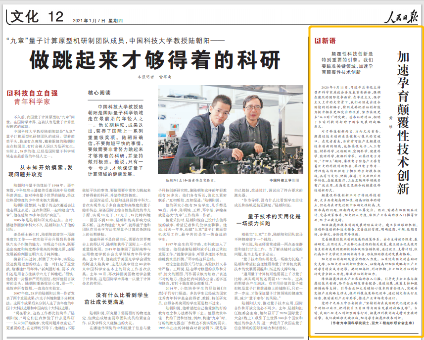 党的十九届五中全会提出,“坚持创新在我国现代化建设全局中的核心地位,把科技自立自强作为国家发展的战略支撑”。当前,我国已经进入创新型国家行列,颠覆性科技创新是特别重要的引擎。我们要瞄准关键领域,加速孕育颠覆性技术创新。