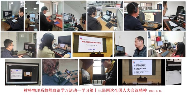 3月4日至11日,2021年全国两会在北京胜利召开。3月15日下午,轮盘游戏 全体教师以党支部为组织单位收看校园网络直播,收听收看十三届全国人大常委会委员、农工民主党中央副主席、我校杰出校友杨震,为师生作十三届全国人大四次会议传达。