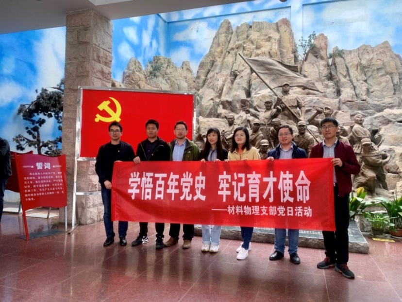 4月27日,材料物理支部党支部开展“学悟百年党史 牢记育才使命”主题党日活动。支部全体党员来到苏南抗战胜利纪念碑脚下,怀着崇敬的心情,瞻仰了雄伟的纪念碑,并向纪念碑鞠躬行礼,深刻缅怀在苏南抗战中英勇牺牲的各位烈士。