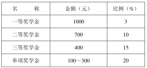 综合奖学金(分设一、二、三等奖学金)和单项奖学金两类。