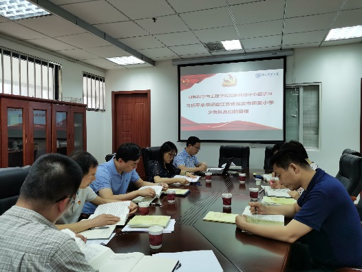 赵允玉书记首先传达了《关于深入学习贯彻习近平总书记给淮安新安小学少先队员重要回信精神,深化党史学习教育的通知》精神,领读了习近平总书记给淮安新安小学少先队员的重要回信,回顾了新安小学红色校史中“新安旅行团”以文艺为武器宣传抗日救亡的光辉事迹;之后,领学了习近平总书记青海考察时的重要讲话精神,并将习近平总书记重要回信精神和青海考察重要讲话学习与习近平总书记《以史为镜、以史明志、知史爱党、知史爱国》重要文章学习相结合,作为党史学习教育的重要内容,创新学习方式方法,扎实推进党史学习教育。